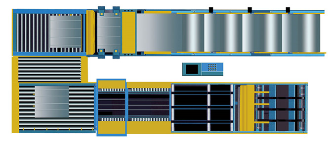 風管6線采用模塊化設計,可全自動實現風管板料的定尺寸剪斷、壓筋,風管的自動切槽、切角、聯合角咬口成型(東洋骨),風管共板法蘭自動成型功能及自動折彎成“L”、“U”、“口”型風管,具有自動化程度極高、效率極高、省人工、省材料的優點。非常適合大型的風管加工廠。生產線由開卷機(電動)、矯平機、壓筋機、編碼器、液壓切角切槽(4套專用風管模具)、液壓折彎機、液壓剪板機、聯合角咬口成型機(東洋骨機)、雙機聯動共板法蘭成型機、板料傳輸平臺、工業級數控系統及MEIFORMER公司專用的風管生產線軟件組成。