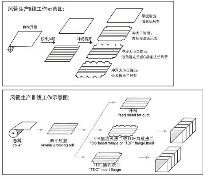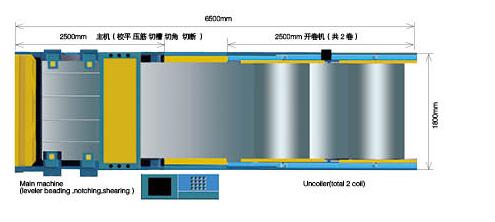 風(fēng)管2線由開(kāi)卷機(jī)(電動(dòng)),矯平機(jī),壓筋機(jī),編碼器,液壓切角切槽(4套專用風(fēng)管模具),液壓剪板機(jī),工業(yè)級(jí)數(shù)控系統(tǒng)及MEIFORMER公司專用的風(fēng)管生產(chǎn)線軟件組成。可自動(dòng)實(shí)現(xiàn)風(fēng)管板料的定尺寸剪斷,壓筋,及風(fēng)管的自動(dòng)切槽,切角功能。具有省人工,高效率,省材料的優(yōu)點(diǎn)。非常適合中等規(guī)模的風(fēng)管加工廠和一般的五金加工開(kāi)料。標(biāo)準(zhǔn)配置包括兩個(gè)料卷(電動(dòng)),主機(jī)包括矯平,壓筋,編碼器,液壓切槽切角系統(tǒng),風(fēng)管剪切系統(tǒng)及數(shù)控系統(tǒng)。選項(xiàng)為板料分料器(方便送料),增加開(kāi)機(jī)。