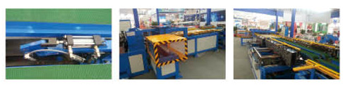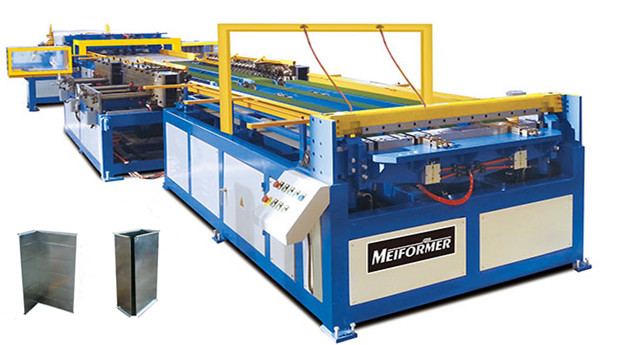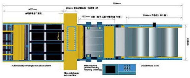風管5線采用直線型模塊化設計、可全自動實現(xiàn)風管板料的定尺寸剪斷、壓筋、風管的自動切斷、切角、聯(lián)合角(東洋骨)、風管共板法蘭自動成型功能及自動折彎成“L”、“U”、 “口”型風管,具有自動化程度高、效率高、省人工、省材料的優(yōu)點。非常適合大型的風管加工廠。