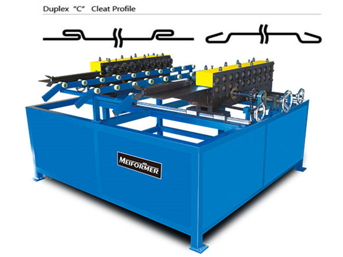 雙機聯動“C”插條成型機一次便成型風管的“C”插條,具有效率快,成型方便美觀等特點,大大提高了勞動效率,節約了風管轉場的空間和人力.采用高精度軸承;重型底盤;堅硬并且磨圓的輥輪軸;專業的輥輪材料及熱處理,成型速度高,輥輪使用壽命長等特點。